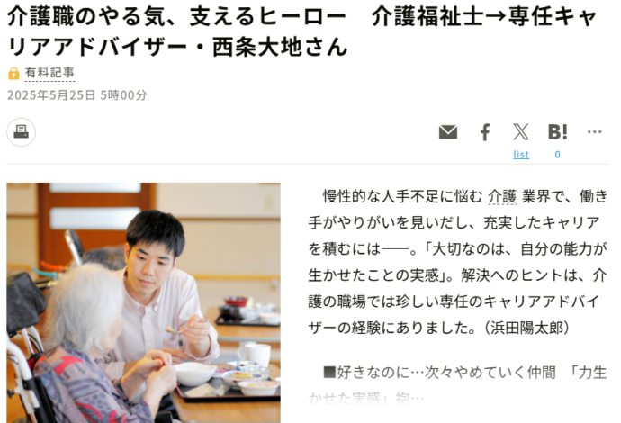 社会福祉HERO’S2024ベストヒーロー賞の西条大地さんが朝日新聞Reライフ面に掲載されました!
