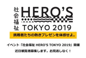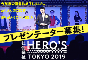 ※今年度の募集は終了しました。たくさんのご応募ありがとうございました※ 社会福祉HERO’S TOKYO 2019 プレゼンテーター募集!(7月4日更新)